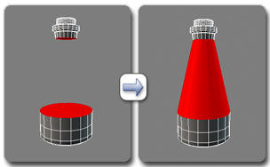 挤出多边形时,这些多边形将会沿着法线方向移动,然后创建形成挤出边的新多边形,从而将选择与对象相连。