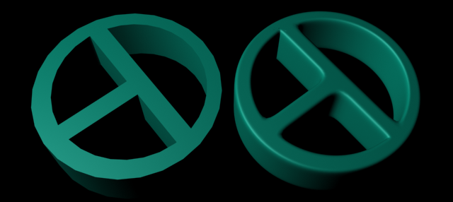 右:应用“四边形网格化”和“网格平滑”修改器后