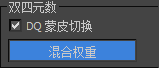 - 在“参数”卷展栏上的“双四元数”组中,确保“DQ 蒙皮切换”处于启用状态(默认状态),然后启用“混合权重”。