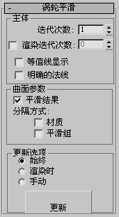 设置手动或渲染时更新选项,适用于平滑对象的复杂度过高而不能应用自动更新的情况。注意同时可以在主组中设置更高的平滑度仅在渲染时应用。