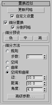 “置换网格”卷展栏用于选择用哪种曲面近似设置产生网格。