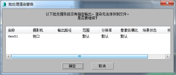 如果渲染到具有无效的输出路径的文件,则将出现该版本的“批处理渲染警告”对话框。例如,如果渲染客户的模型,并且已设置其自身的输出路径,则将出现该对话框。