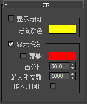 禁用之后,3ds Max 使用与其渲染颜色近似的颜色显示毛发。开启之后,则使用色样中所示颜色显示头发。默认设置为禁用。