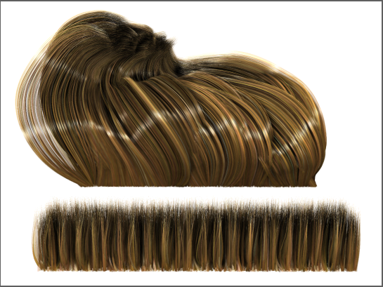 卷发实际上计算两个噪点域,两者都使用相同的频率设置和相同的梢/根振幅。一个噪点域相对于毛发是静态的。“动画”参数可用于通过毛发随时模拟第二个噪点域的动画。这对于类似草地之类的对象非常实用,否则计算真实的动画将会消耗过多的资源。这些参数提供了类似的结果,其消耗的资源只是计算消耗资源很小的一部分。