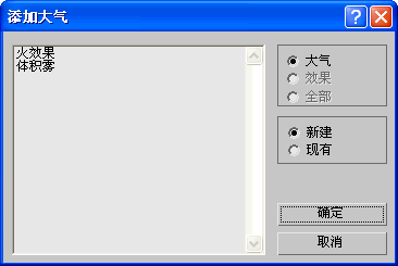 以下单选按钮用于在新大气或现有大气之间进行选择。