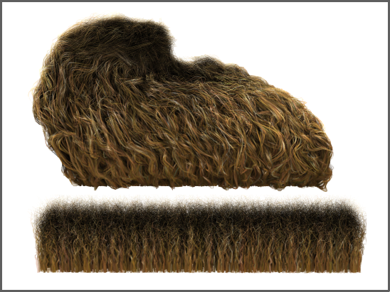 纽结取代的工作和卷发类似,但其是沿导向的整个长度评估噪点查找。其结果是一个噪点模式在比卷发噪点更大的规模上工作。其效果类似于卷发。