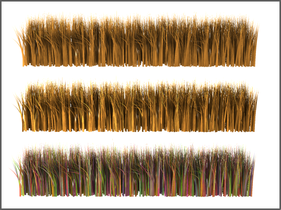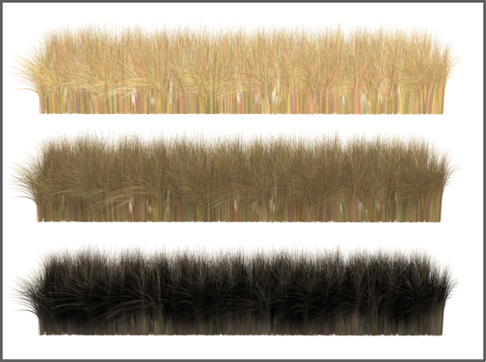 为获取和贴图颜色最接近的结果,可将“梢颜色”和“根颜色”设置为白色。此外,设置为其他颜色将给贴图着色。