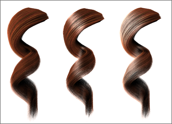 左:用于毛发的纹理贴图(中央和右侧)