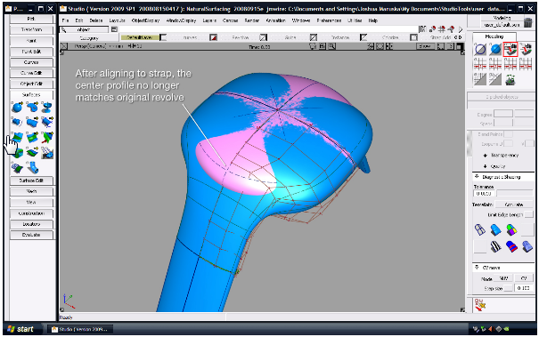 Before we start tweaking, I wanted to show what the surfaces look like after the strap transition alignment.