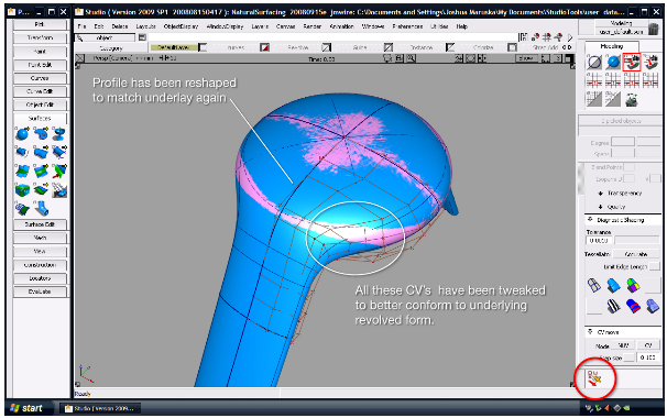 After giving the CV's a good tweaking, our shape is much closer to the revolve than ever.