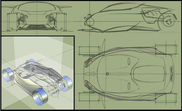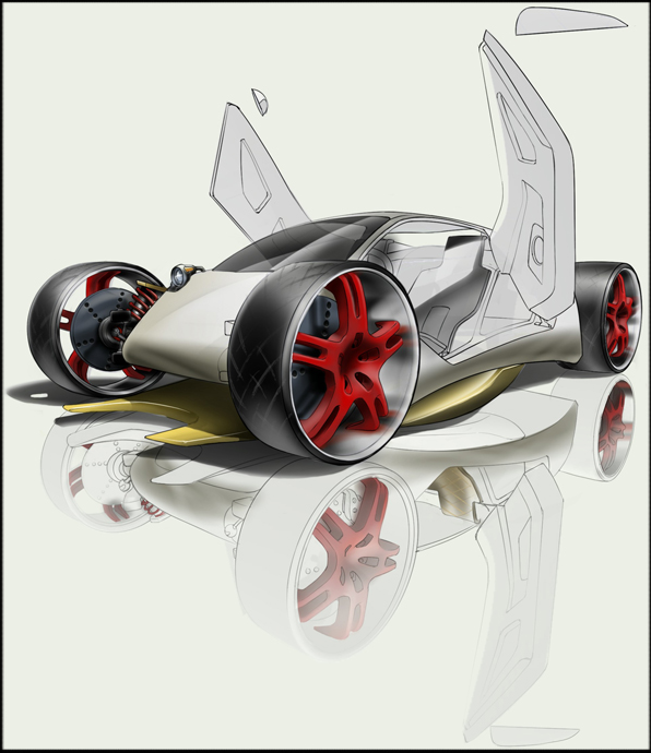 The goal for this project was to produce a fairly detailed sketch render of an open-wheel, mid engine sports car with deadly accurate perspective.