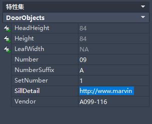 注: 也可以为特性集定义中的手动特性定义默认字段。例如,如果希望所有墙都包含显示图形上次保存日期的字段,可以在特性集定义中输入“SaveDate”字段,这样每个连接到特性集的对象都会显示此字段。