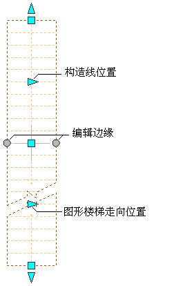 直跑楼梯构造线的“位置”、“图形楼梯走向位置”、“编辑边缘”夹点