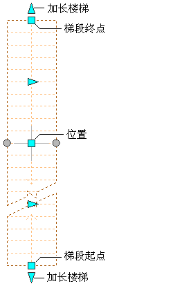直跑楼梯梯段的“起点和终点”、“位置”和“加长楼梯”夹点