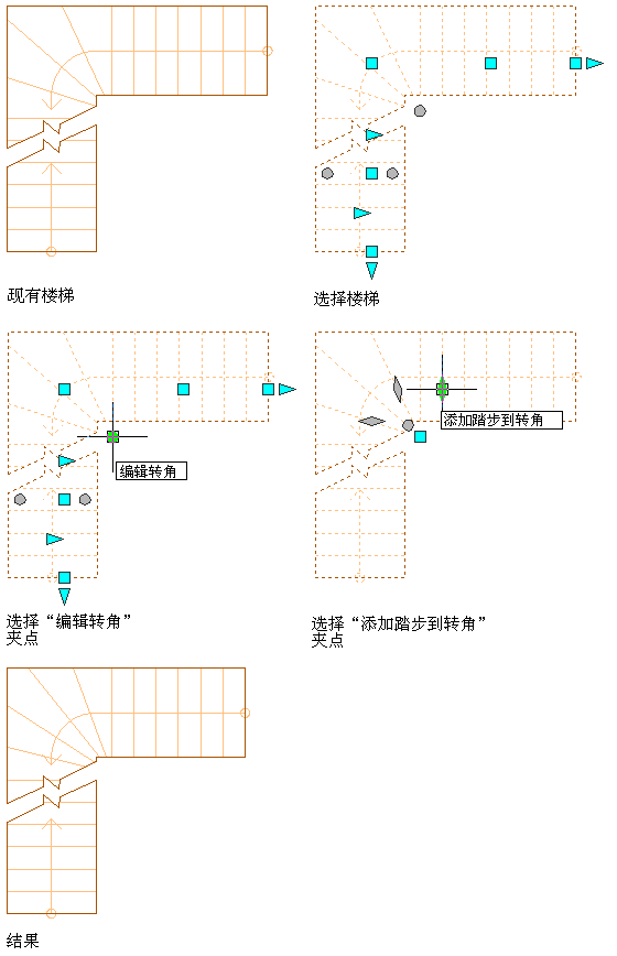 - 选择“添加踏步到转角”夹点。