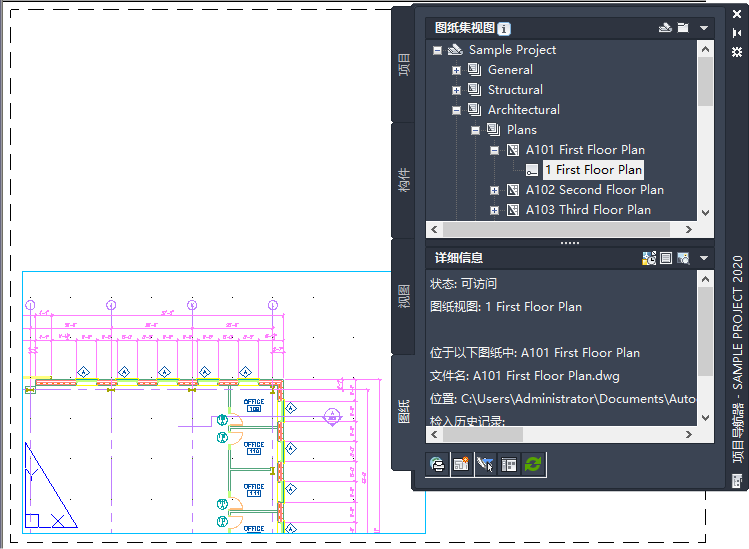 图纸视图是图纸上的图纸空间视口,它是在将视图图形或模型空间视图从“项目导航器”选项板中拖放到图纸上时生成的。