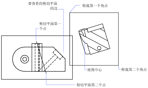由两点定义用作辅助投影的倾斜平面。这两点必须在同一视口中。