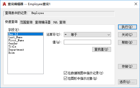列出当前数据库表的字段,从中可以选择一个用于查询。