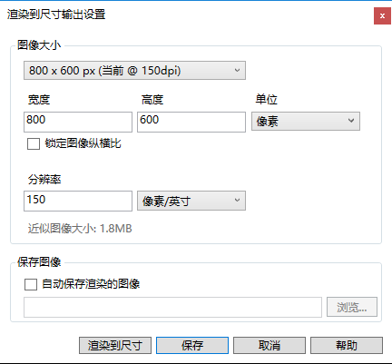 - 在渲染到“渲染”窗口时,指定渲染图像的输出尺寸和分辨率。