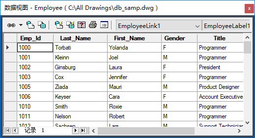 在当前图形中选择图形对象时,“数据视图”窗口中将自动显示链接记录。
