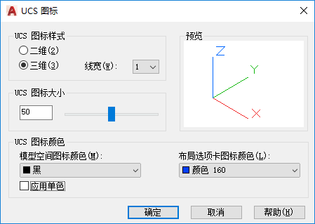 控制 UCS 图标在模型空间视口和布局选项卡中的颜色。