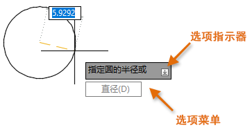 当系统提示您输入圆的半径时,是否注意到工具提示末尾处带有向下箭头的图标?
