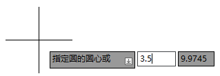 绝对坐标值“3.5,5”将用作圆心,并且 CIRCLE 命令的下一个提示将显示在“动态输入”工具提示中。 注: 不是按 Enter 键以指定二维坐标值,而是可以键入一个逗号,然后输入一个数字作为 Z 坐标值。