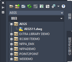 “项目管理器”将列出“AEGS”文件夹下的文件。此后,您添加的新图形将添加到绘图次序的末端。您现在即可访问完成本书中的练习所需的文件。