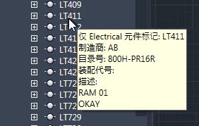 在元件树中不同装置类型以不同方式表示。插入电气元件时,建议使用唯一的名称(安装代号、位置代号、元件标记)、引脚号和端子号。例如,如果图形中有电缆标记,且有重复的电缆标记值,那么您可能会在元件树视图和“连接”选项卡中遇到异常元件行为。对于“位置视图”中的端子和电缆标记,上述情况更常见。