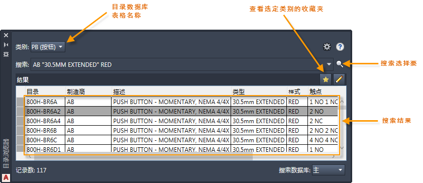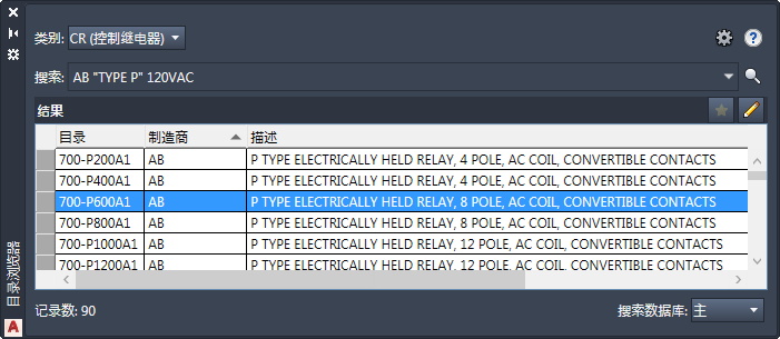 如果您从项目的元件列表开始,并知道零件号,则可以通过从目录数据库中选择元件来插入该元件。使用“目录浏览器”选项板可以从目录数据库插入元件。 查找