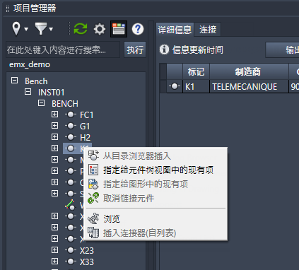 从元件树视图或“详细信息和连接”窗格中的元件表达移动到图形中的符号。