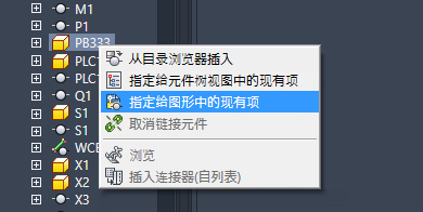 在激活图形中,选择要与 Inventor 零件链接的电气元件。元件树视图将刷新以显示链接的元件。
