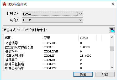 比较两种标注样式的特性或显示一种标注样式的所有特性。