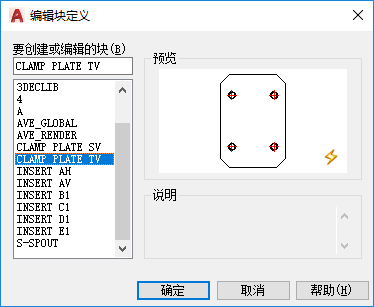 从保存在图形中的块定义的列表中进行选择,以便在块编辑器中编辑。也可以输入要在块编辑器中创建的新块定义的名称。