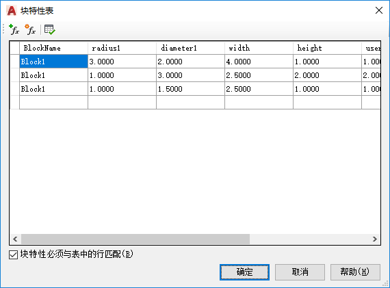 按 Shift+Enter 组合键可在“块特性表”对话框的栅格中为多线属性值添加新行。