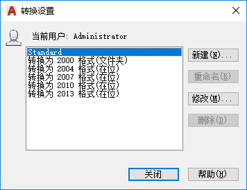 删除当前亮显的转换设置。不能删除“标准”转换设置。
