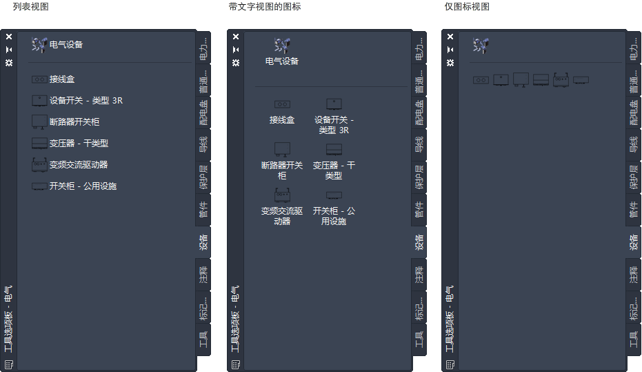 | 在单栏列表中显示工具图像和名称 | “列表视图”作为“视图样式”。 |
