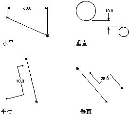 可以为所有类型的成对几何图形进行定义。定义水平方向上两个特征之间的一个值。距离标注的值不能为负。