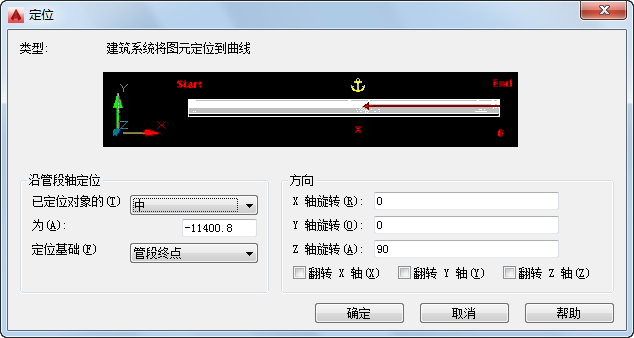 定位可将 AutoCAD MEP toolset 对象链接到另一个对象,或链接到布置曲线或布置格线上。在“管道”域中,此工作表应用于使用定位的管件(即,接头)。在“图例”域中,它应用于符号。可以相对于定位的当前坐标系和旋转角度查看并修改 X、Y 和 Z 插入点。可以通过指定一个标注位置,或者围绕 X、Y 或 Z 轴翻转定位,沿着段轴重新放置定位对象。仅在使用定位工具定位对象后,“定位”选项卡才可用。