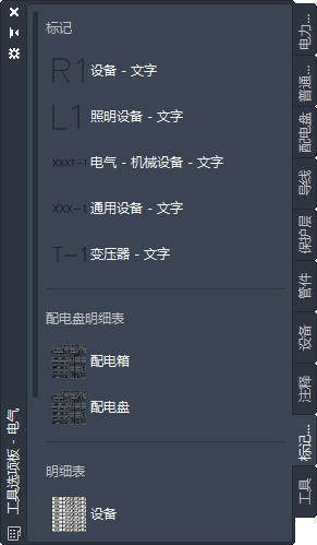 - 在“电气”工具选项板集中,单击“标记和明细表”选项板。