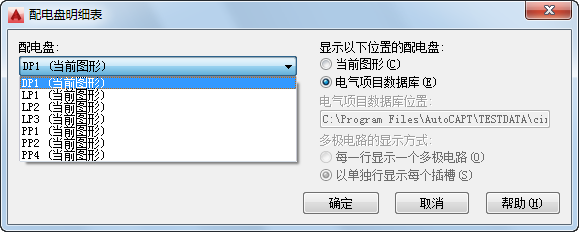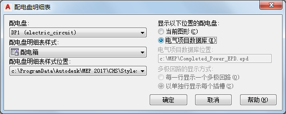 - 选择“电气项目数据库”作为“显示以下位置的配电盘”,然后单击“确定”。