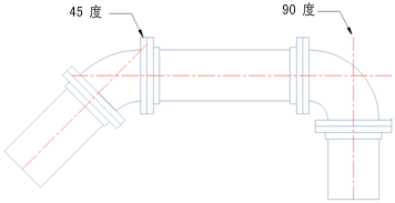 管道标准和管道公司在单线、双线、模型和平面显示中使用直中心线以准确显示弯头的相交位置。管道设计通常决定中心线路径。污水管道承包商和制造商使用直中心线以保证管道安装和制造图形过程中的准确性。