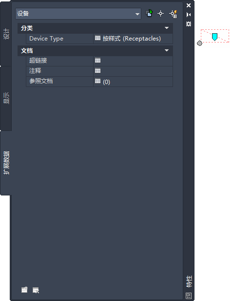 因为图形中的设备是设备样式的实例,所以,该设备具有设备样式中每个分类定义的特性。在“特性”选项板的“扩展数据”选项卡上,可以查看或替代图形中一个或多个设备的分类。