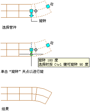 | 将管件旋转 90 度 | 在按 Ctrl 键的同时,单击“旋转”夹点 ( |
