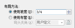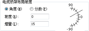 2. 在“电缆桥架布局系统配置”对话框中的“布管”选项卡上,在“电缆桥架布局坡度”下,单击“角度”或“分数”。