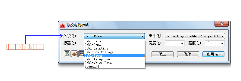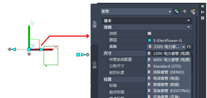 对于套管,在“特性”选项板上的“常规”下,从列表中指定系统。