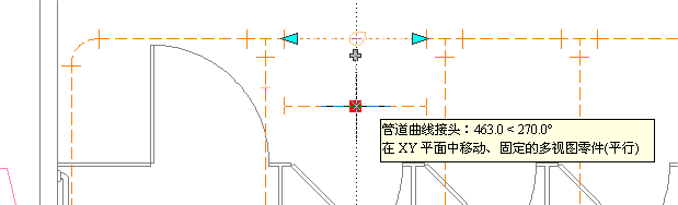 观察连接到卫浴管线的弯头如何随管线一起移动,以及连接到弯头的卫浴管线如何修改长度。该系统仍然是连接的。