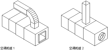 可将设备(称为多视图零件)创建为基于块的零件。多视图零件(如空调机组、电动机控制中心或泵)通常由具有自己的几何特征的一组独特零件组成。造型、尺寸、连接点和特性(如制造商或材质)可能会不同。