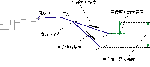 “平缓填方坡度”连接超过“平缓填方最大高度”时使用的填方坡度 |