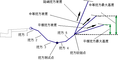 “平缓挖方坡度”连接超过“平缓挖方最大高度”时使用的挖方坡度 |